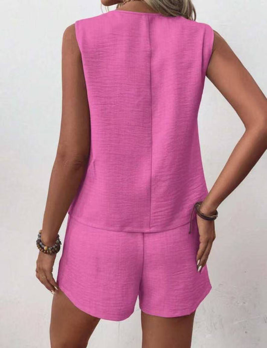 CD | Top fără mâneci cu decolteu în V și set de pantaloni scurți