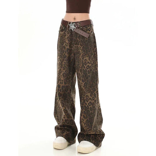 CD | Pantaloni retro cu imprimeu leopard