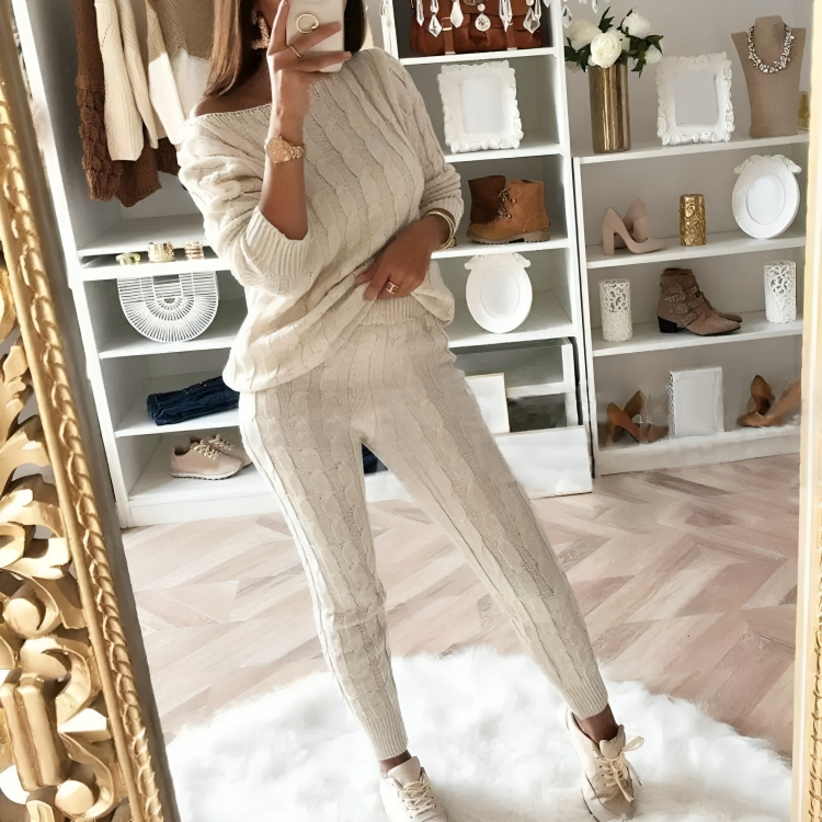 CD | Set de iarnă pentru femei cu pulover tricotat și pantaloni