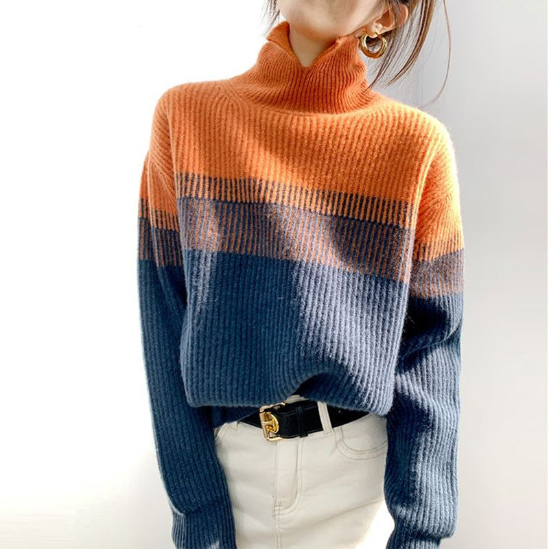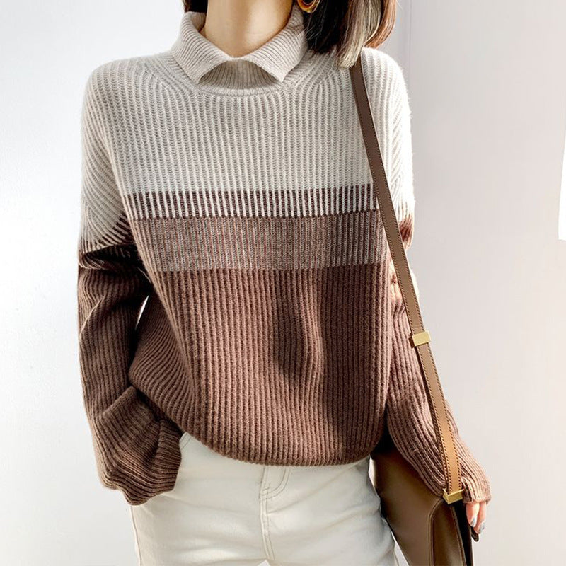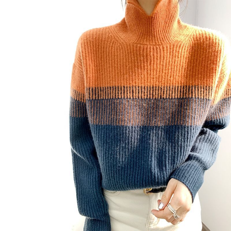 CD | Pulover casual cu mânecă lungă și dungi, cu decolteu înalt