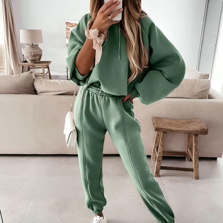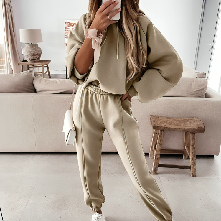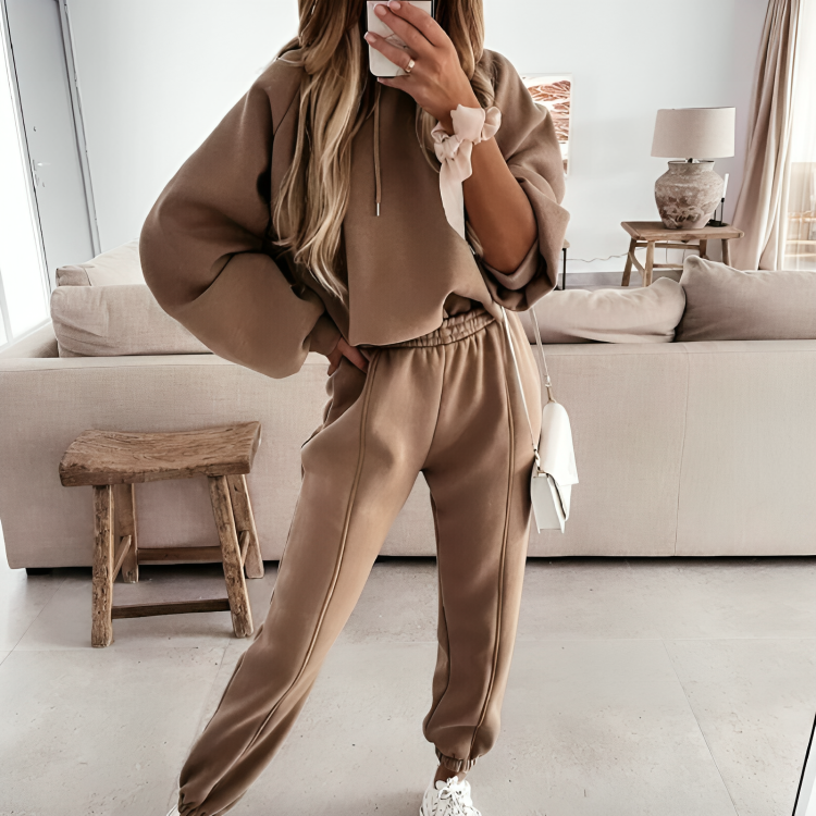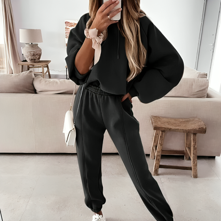 CD | Jachetă cu glugă supradimensionată și pantaloni pentru femei, set de iarnă